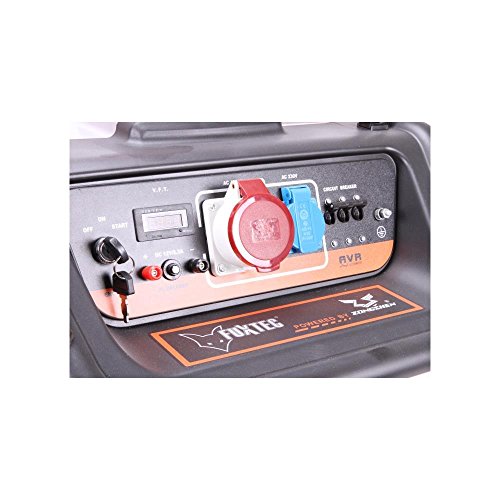 Wenn Sie eine Baustelle oder Ihr Haus versorgen möchten, dann könnte der FX-SG7500 12KW Stromgenerator der richtige Partner für Sie sein, denn mit einer Leistung von 6,5 kW kann er sich durchaus sehen lassen. Trotz seines Gewichts ist das Stromaggregat auch mobil zu verwenden, denn der Rahmen ist mit Laufrädern azsgestattet die einen einfachen Transport erlauben. Das macht ihn sehr vielseitig, denn auch eine Gärtnerei oder die Land- und Forstwirtschaft wird ihn einsetzen können. Die stabile Leistung kann über zwei 230 Volt Steckdosen und zwei 12 Volt Bananenstecker abgerufen werden. Für den Notfall gibt es einen Kippschalter. Praktisch ist auch, dass der Benzintank mit 28 Liter Fassungsvermögen eine Füllstandsanzeige hat. In den Öltank passen 1,1 Liter.